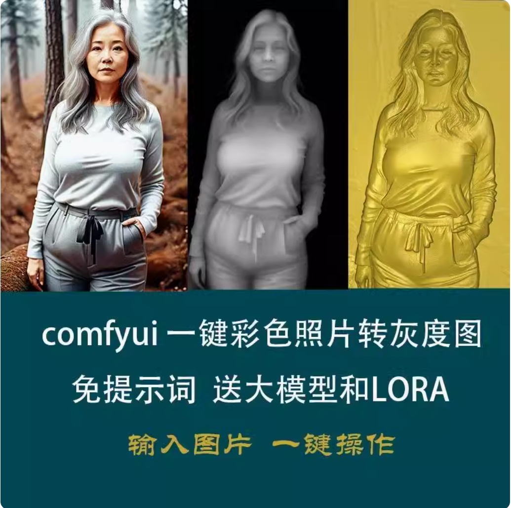 商品名称:ai生成灰度图软件sd comfyui深度图模型软件浮雕一键出图工作流